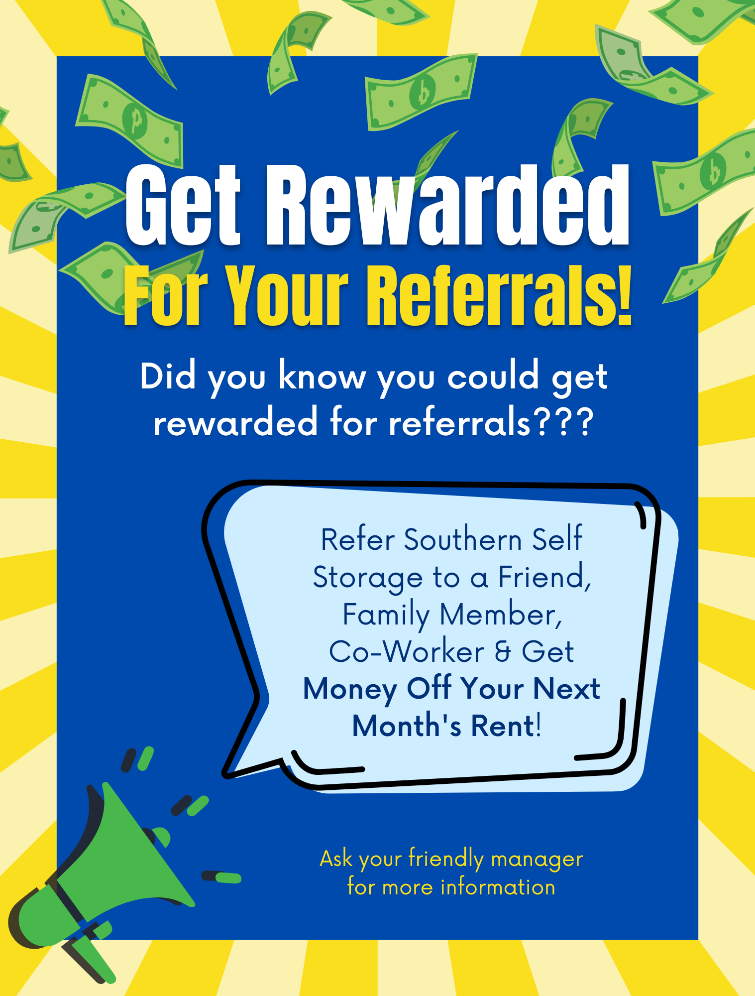 I designed a two-sided table tent for the leasing office. Like the rest of the brand products I created while working at Southern Self Storage, I included the same or similar elements such as fonts and colors.