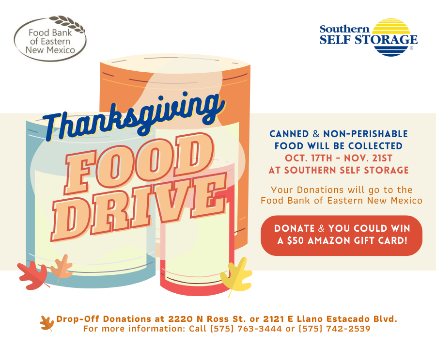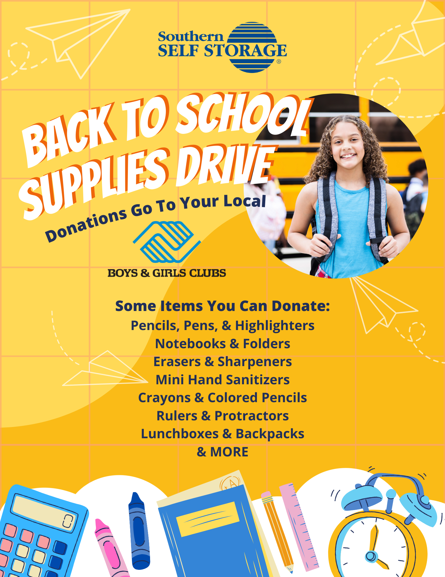 Every year, Southern Self Storage gives back to the local communities where our facilities reside. We reach out to the property managers and let them choose what organization they want to partner with or donate to, including schools, food banks, and other non-profits. We support them with social media and by creating custom flyers for their stores.