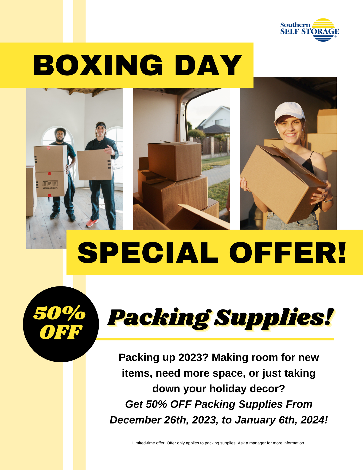 Happy Boxing Day! Our end-of-year packing supplies sale kicked off at the perfect time for people who need boxes to pack away their holiday supplies and decor. Or for those who want to do some purging and decluttering for the new year.
